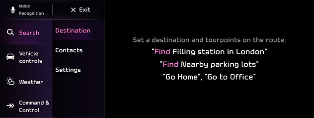 Mõned käsklused, nagu Find <POI category>, on saadaval ainult siis, kui sihtkoht on fikseeritud.