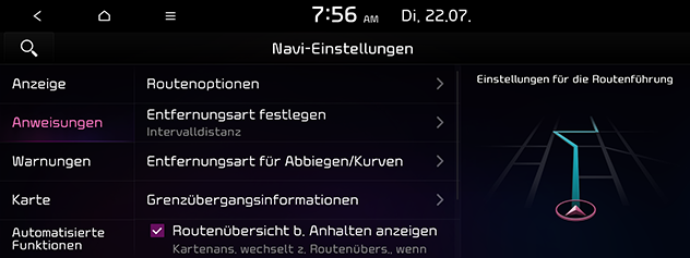 In diesem Menü können Einstellungen hinsichtlich der Wegführung geändert werden.