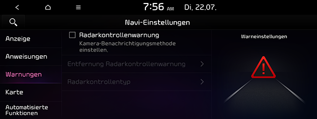 Entfernung Radarkontrollenwarnung: Einstellungen zu Kamera-Warnung ändern.