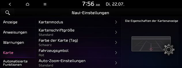In diesem Menü können Einstellungen hinsichtlich der Karte geändert werden.