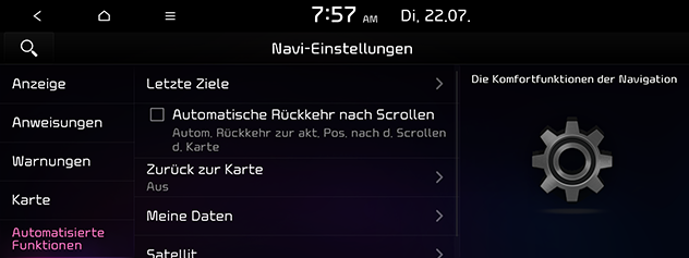 Auf SETUP > Navigation > Automatisierte Funktionen drücken.