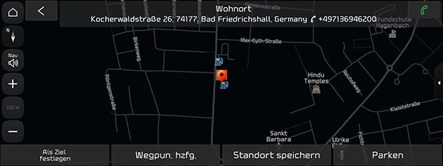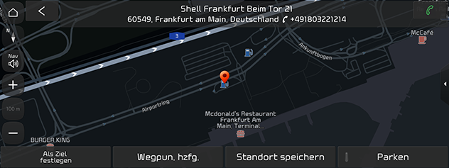 Wegpun. hzfg: Fügt diesen Ort als Tour-Punkt zur aktuellen Route hinzu. Nur verfügbar, wenn das Ziel festgelegt ist.