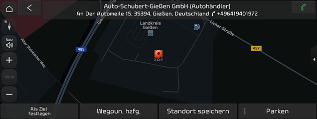 Ziel: Sucht nach Kia-Diensten in der Nähe des aktuellen Ziels. Nur verfügbar, wenn das Ziel festgelegt ist.