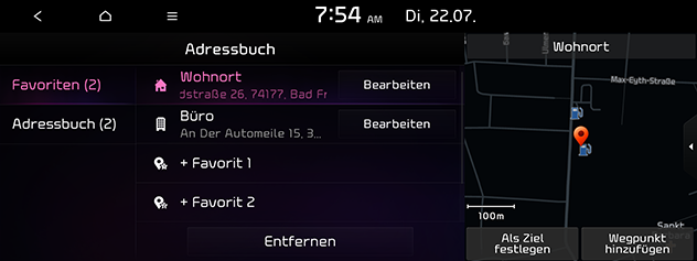 Drücken Sie NAV > Adressbuch > Favoriten oder Adressbuch.