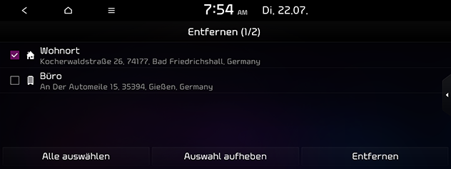 Drücken Sie NAV > Adressbuch > Favoriten oder Adressbuch > Entfernen.