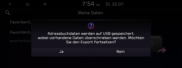 Diese Funktion wird benutzt, um gespeicherte Orte in ein USB-Speichergerät zu exportieren.