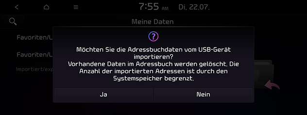Durch den Import kann sich die Favoritenliste und die Liste der vorher gespeicherte Adressen ändern.