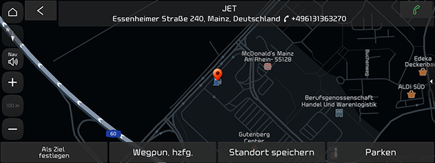 Sie können einen POI als Ziel festlegen. Je nach Modell, Option und Land können sich manche Bildelemente vom tatsächlichen Bildschirminhalt unterscheiden.