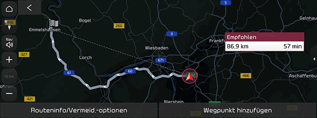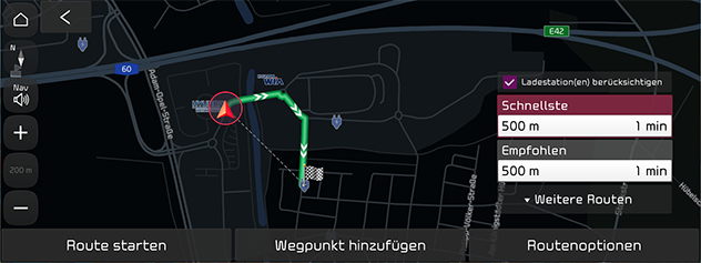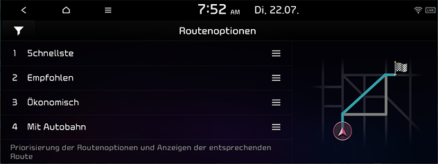 Sie können je nach Wunsch die Route nach verschiedenen Kriterien ändern. Vergewissern Sie sich, dass das System mit dem Netzwerk verbunden ist. Routenoptionen ist nur verfügbar, wenn das Ziel festgelegt ist.