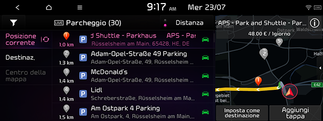 È possibile impostare un parcheggio come destinazione utilizzando diversi metodi di ricerca.