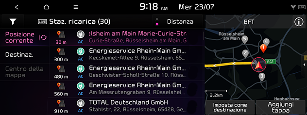 Destinaz.: Cerca le stazioni di ricarica in funzione in prossimità della destinazione corrente.