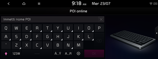 Inserire il nome del PDI desiderato (Punto di Interesse) e premere OK.