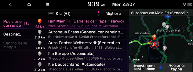 Posizione corrente: Cerca le stazioni di servizio in funzione in prossimità della posizione attuale del veicolo.