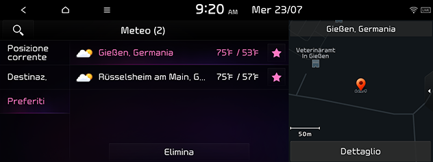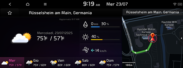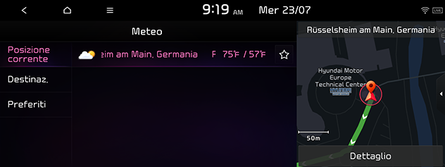 ] > Kia LIVE > Meteo > Posizione corrente o Destinaz. > [