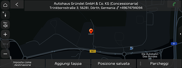 Posizione corrente: Cerca POI in prossimità della posizione corrente del veicolo.