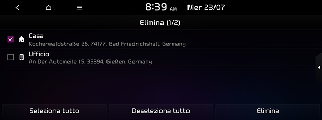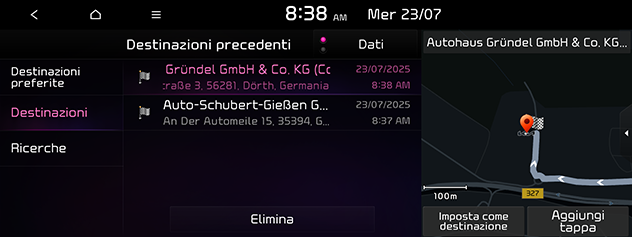 Premere Elimina per eliminare le destinazioni precedenti. Selezionare l'elemento desiderato, quindi premere Elimina.