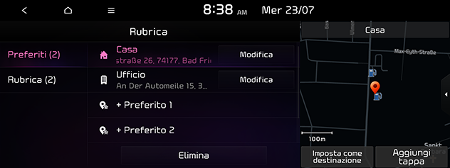 Premere NAV > Rubrica > Preferiti e la voce desiderata per salvare la posizione. Oppure premere NAV > Rubrica > Rubrica > Aggiungi.