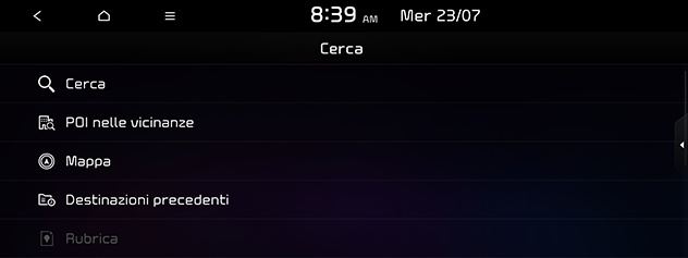 È possibile trovare la destinazione usando vari menu. Alcuni menu sono disponibili solo quando il sistema di navigazione è connesso alla rete di telefonia mobile. Alcuni elementi delle immagini potrebbero differire dalle schermate effettive a seconda del modello, dell'opzione e del paese.