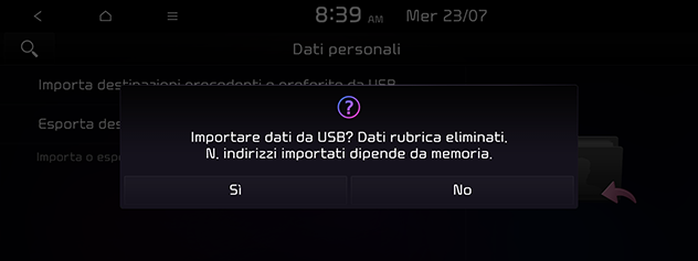 La funzione di importazione può modificare l’elenco di preferiti e gli indirizzi salvati in precedenza.