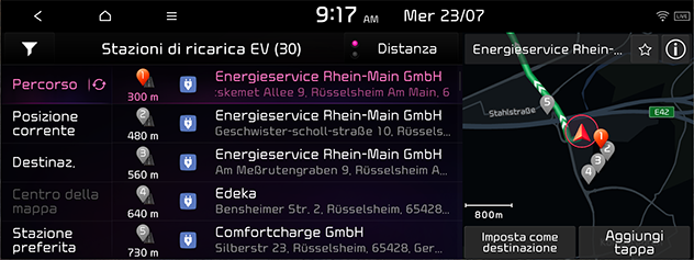 Premere NAV > POI nelle vicinanze > Stazioni di ricarica EV.