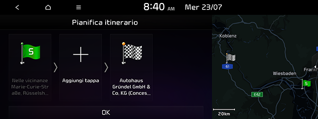 È possibile verificare l'intero percorso tra la posizione attuale e la destinazione.