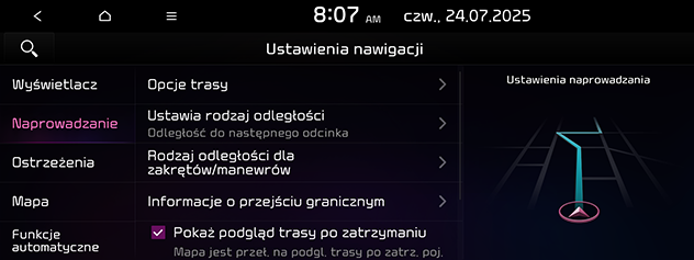 Naciśnij SETUP > Nawigacja > Naprowadzanie.