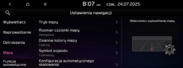 Rozmiar czcionki mapy: Ustawia rozmiar czcionki mapy. Wybierz żądany rozmiar pomiędzy Duża, a Domyślna.