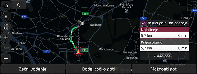 Ta možnost vam omogoča prikaz razdalje do naslednje točke vodenja in smeri zavijanja na tej točki vodenja. Tako se lahko zaradi prometnih pogojev izognete določenim cestam. Lahko izračunate novo pot od lokacije vozila do cilja.