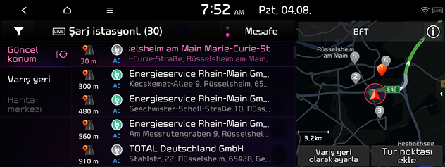 Varış yeri: Seçilen varış noktasının yakınındaki gerçek zamanlı şarj istasyonlarını arar.