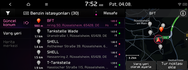 ] > Kia LIVE > Live benzin istasyonları sekmelerine basın.