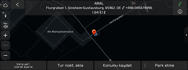 Tur nokt. ekle: Bu konumu geçerli rotaya bir seyahat noktası olarak ekler. Yalnızca varış noktası ayarlıysa kullanılabilir.