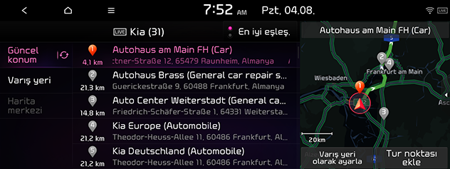 Varış yeri: Seçilen varış noktasının yakınındaki gerçek zamanlı POI'leri arar.