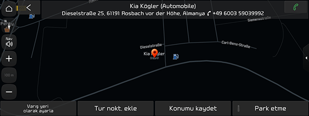 Konumu kaydet: Bu konumu Adres defteri bölümüne kaydeder. Adres defteri düzenleme ekranına gider.