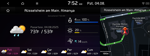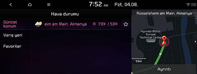Listede [] > Kia LIVE > Hava durumu > Güncel konum veya Varış yeri > [