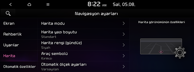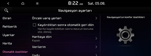 Haritaya dön: Aracın haritaya dönüş zamanını ayarlar.