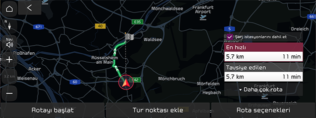 İstenen rotayı seçin ve Rotayı başlat sekmesine basın. Rota yönlendirmesi rota seçeneklerine göre başlar.
