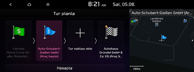Düzenlenen rotayı uygulamak için Hesapla > Rotayı başlat sekmelerine basın.