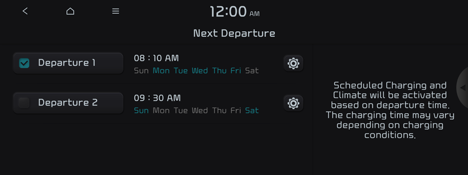 Configure settings to perform climate control at the next departure time.