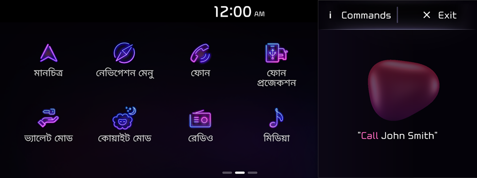 স্টিয়ারিং হুইলে ভয়েস রেকগনিশন বোতাম চাপুন এবং তারপরে ব্যবহারের জন্য উপলভ্য সমস্ত কমান্ড দেখতে "Commands" বলুন।