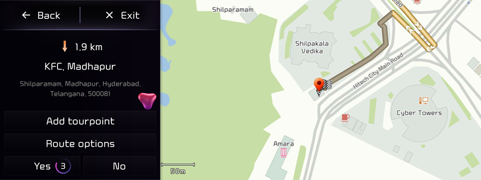 একটি নির্দিষ্ট স্থানে নেভিগেট করতে, যেমন নিকটতম KFC, তারপর।