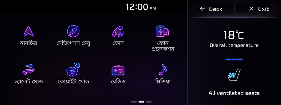 Driver Seat ka AC Level <1~3> kar do | চালকের সিটের বায়ুচলাচলের স্তর 1 থেকে 3 এর মধ্যে সেট করুন। |