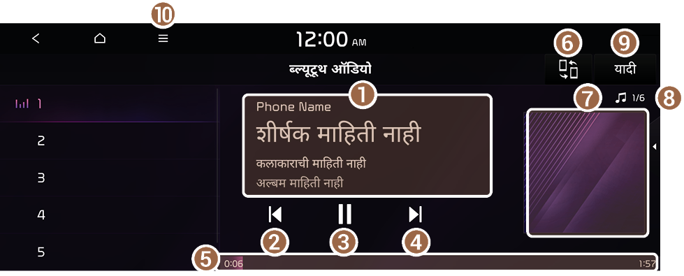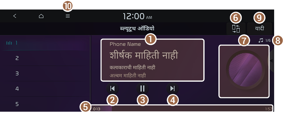 तुम्ही सुरुवातीपासून सध्याची ब्ल्यूटूथ ऑडिओ फाईल प्ले करू शकता.