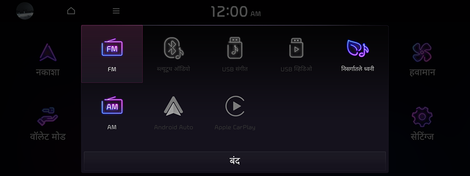 तुम्ही USB उपकरण आणि MP3 प्लेअर सारखी जोडणी केलेल्या उपकरणांवर संगीत किंवा व्हिडिओ फाईल प्ले करण्यासाठी USB मोड वापरू शकता. तुम्ही ब्ल्यूटूथ उपकरण जोडून ब्ल्यूटूथ संगीत देखील प्ले करू शकता, जे ब्ल्यूटूथ फंक्शनला सपोर्ट करते.