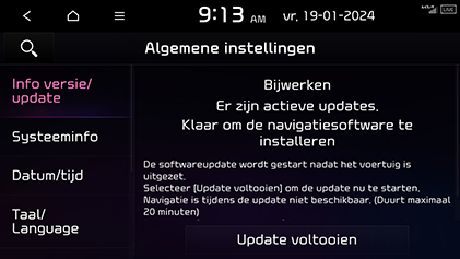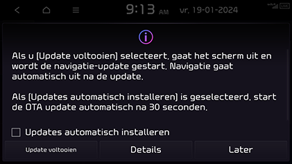 De laatste kaart en software worden geleverd via draadloos bijwerken. Nieuwe software wordt automatisch gedownload wanneer het voertuig ingeschakeld is. Na het installeren van de software, kunt u de bijgewerkte gegevens bekijken in het meldingsvenster.