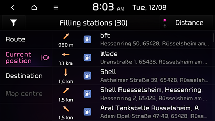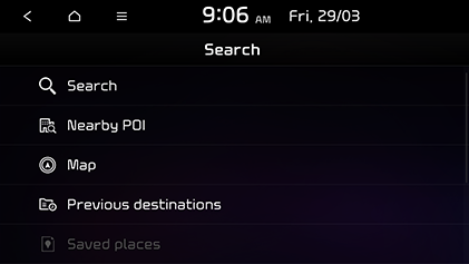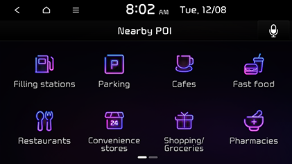Destination: Searches for POIs near the current destination. Available only when the destination is set.