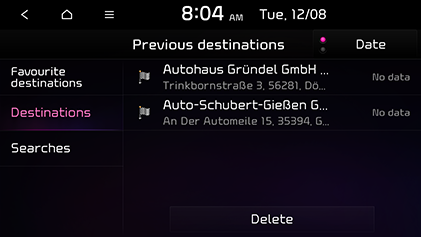 Press Delete to delete the previous destinations. Select the desired item, then press Delete.