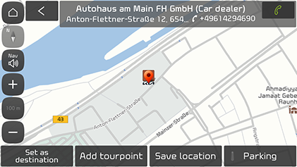 Map centre: Searches for POIs around the scroll mark. Available only when the map screen is scrolled.