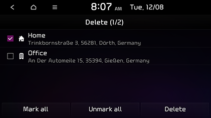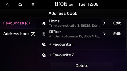 You can select a destination from a location saved in Address book menu. To utilize this function more effectively, destinations that you often travel to should be saved in advance.