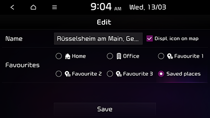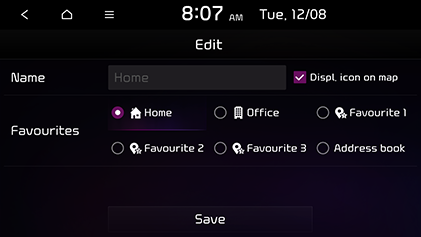 Name: Enter the name of saved places. The name of the places in Home and Office cannot be changed.