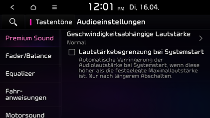 Geschwindigkeitsabhängige Lautstärke: Audio-Lautstärke automatisch an die Fahrzeuggeschwindigkeit anpassen.